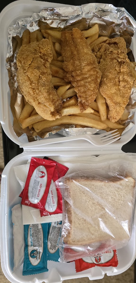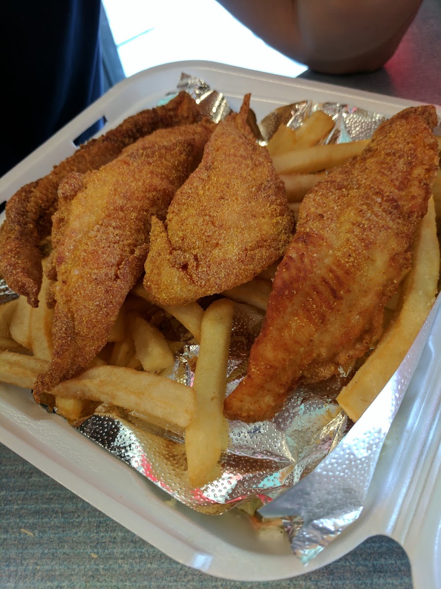 The menu at C J's Bbq & Fish highlights classic barbecue and seafood favorites that feel satisfying without being overly complicated. One dish that immediately grabs attention is the catfish filet. Cooked until golden and crisp on the outside while staying tender inside, it’s the type of dish that pairs perfectly with a fresh side. Alongside it, the French fries arrive hot and crunchy, adding a familiar comfort that balances the seafood nicely.